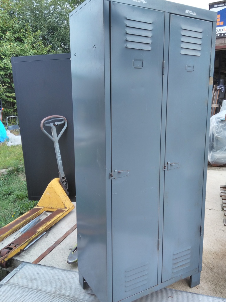 Vestiaire deux portes en très bon état. Fermeture par cadenas non fourni. Dimensions 82x50x194cm (lxpxh). Porte 35cm.