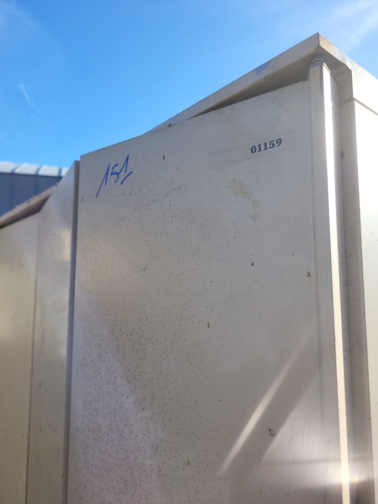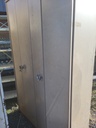 Armoire métallique 2 portes KZ pour sous sol, garage ou entrepôt. Un peu de rouille en surface, belles poignées chromées avec clé. 120x46x198cm 4 étagères