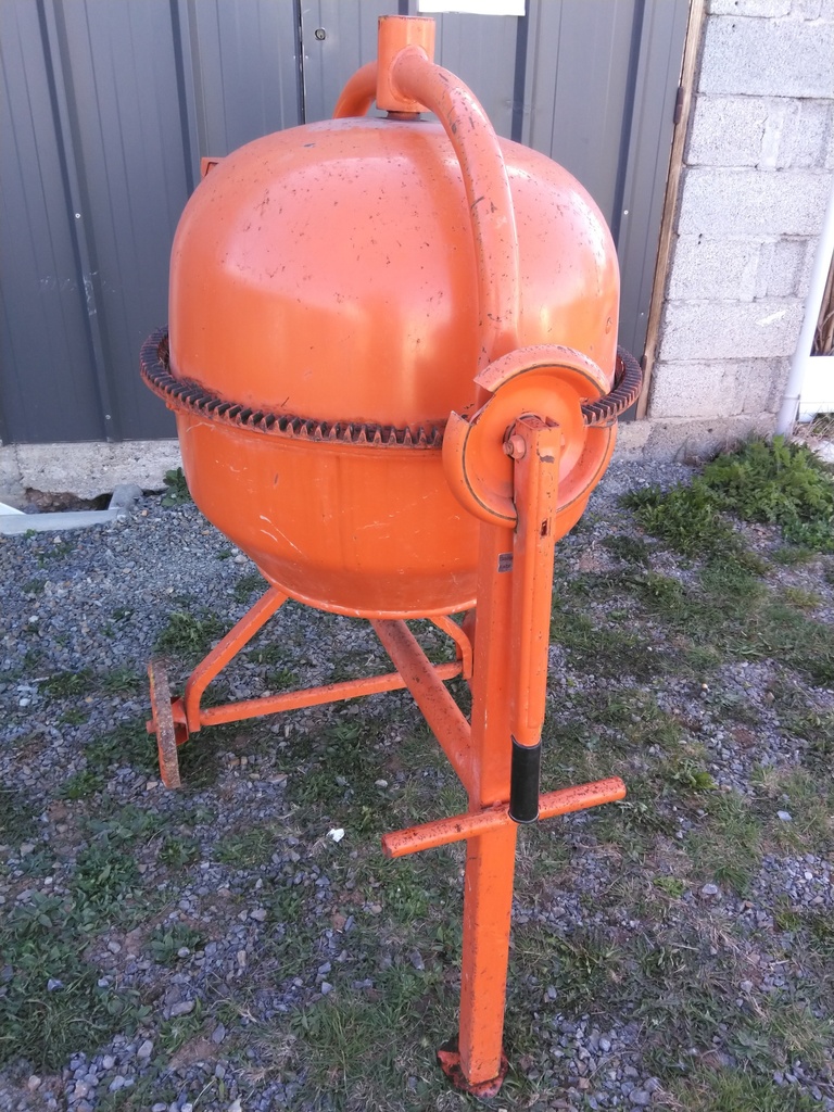 Bétonnière électrique 160l Alko en bon état et fonctionnelle. Elle n'a pas été repeinte et n'a pas de ciment dessus, l'intérieure de la cuve est très propre. Vendue avec un interphase de branchement 220v. Mécanisme de basculement de la cuve, simple et efficace.