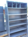 Etagères grises métalliques p40xl100xh200cm emboitables et modulables, certaines avec des plateaux contre plaqués. Quantité limitée. Vendues démontées. Dim: h200xp40xl100cm.