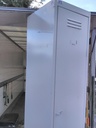 Vestiaire une porte en très bon état malgré une bosse côté droit. Ferme avec un cadenas non fourni. 1 étagère une penderie. 4 pieds. Dimensions 40x50x198cm (lxpxh)